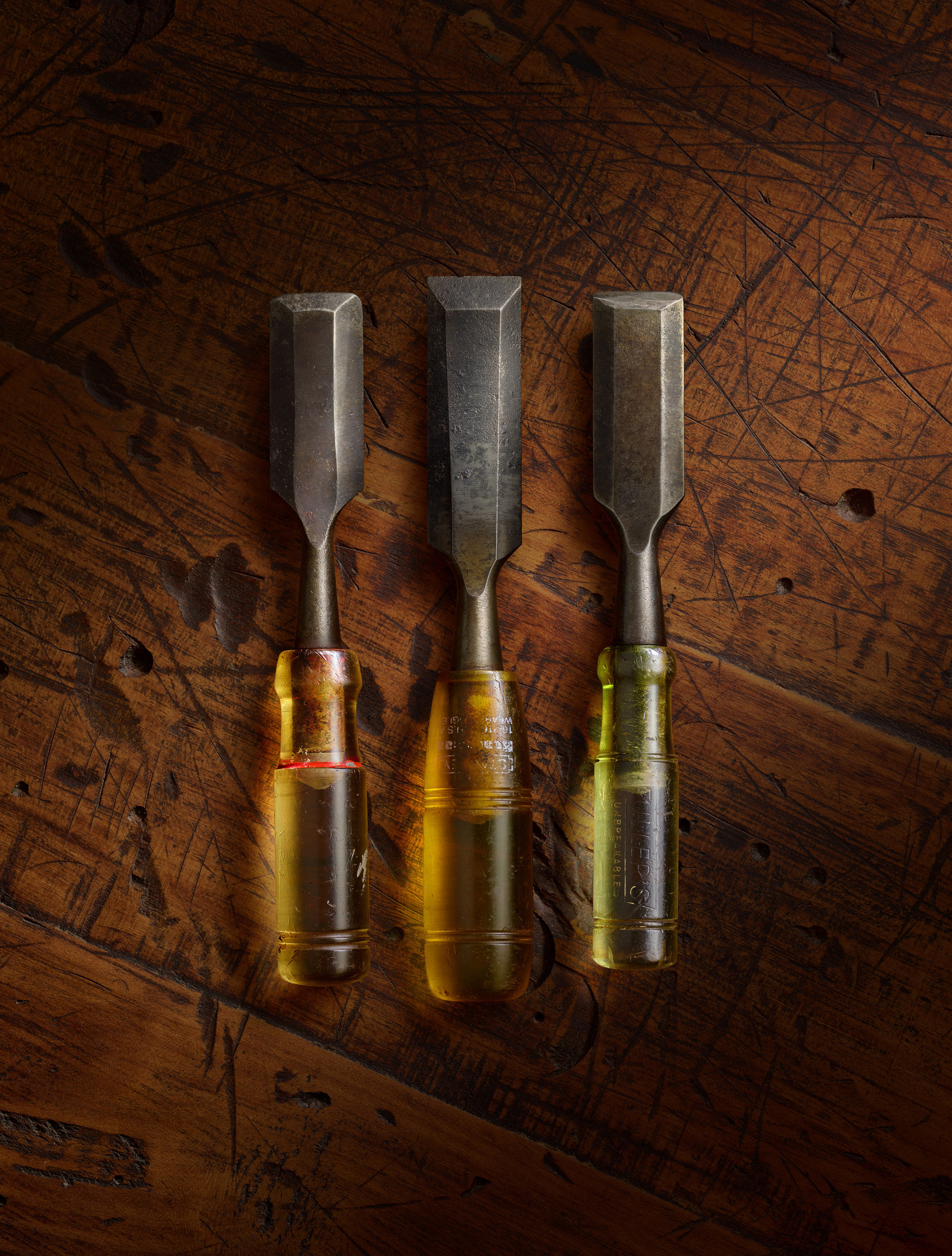 If you have followed my work for some time, you know that I love incorporating vintage tools into my light painting still life work. In my latest still life (below), I wanted to highlight these beautiful transparent handles that were a hallmark of this type of tool decades ago.